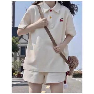 Bộ thun có cổ, họa tiết trái cherry đi học, đi chơi thời trang dễ thương mùa hè AO10