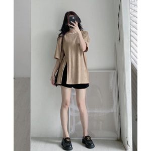 [Mã TOPTREND giảm 10k đơn 99k] Áo nữ thun gân form rộng tay lỡ basic dễ phối đồ AO2