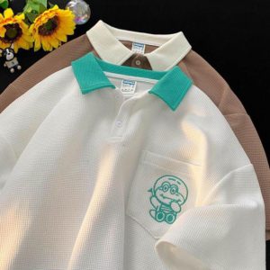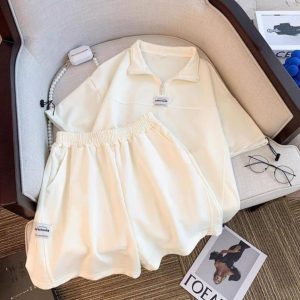 Bộ thun polo logo ngực form rộng tay lỡ phong cách trẻ trung năng động AO8